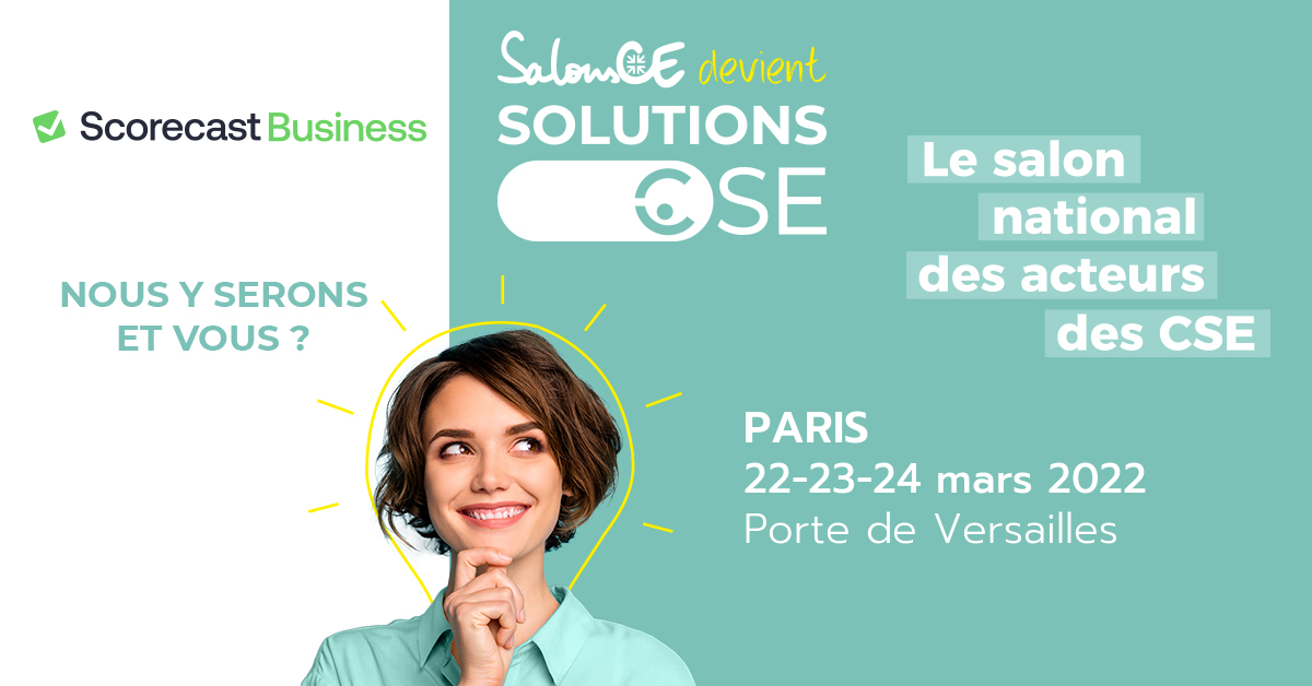Nous serions ravis de vous rencontrer du 22 au 24 mars prochain, lors du Salon Solutions CSE à Paris (Porte de Versailles). Notre stand se trouvera à l'emplacement C018.